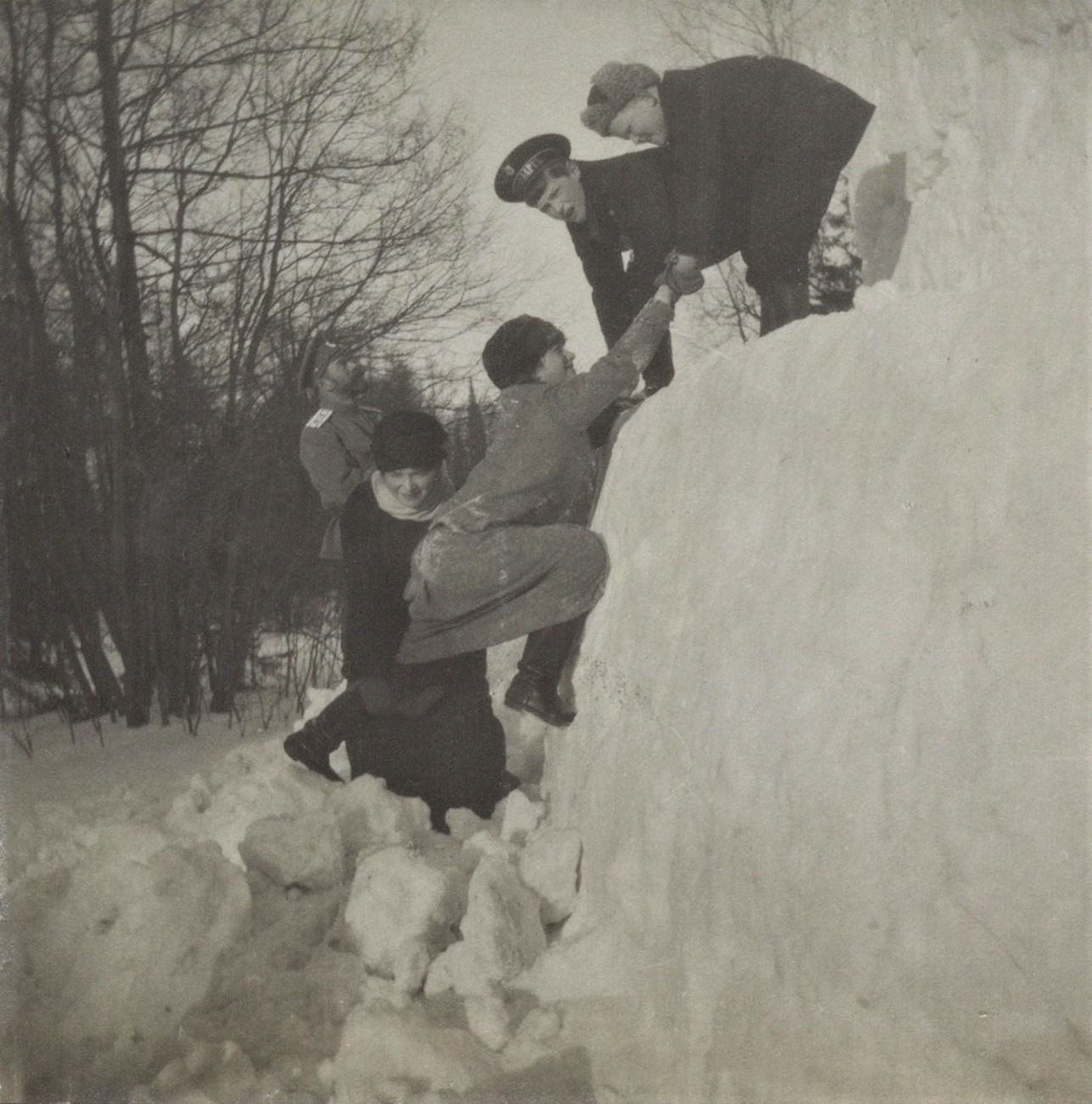 На слици су зимске игре Николаја и његове деце.