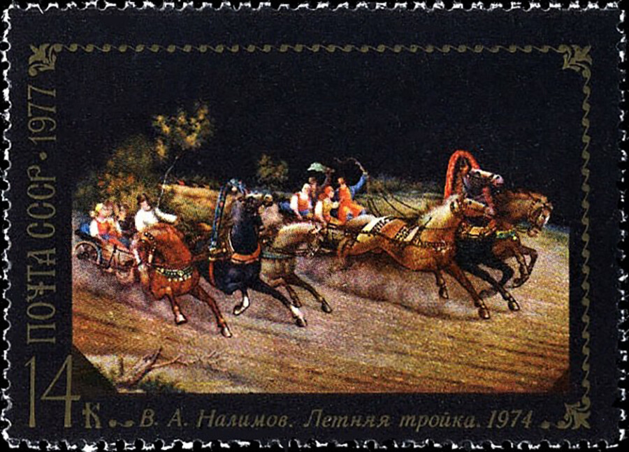 Поштанска марка из 1977. године. В. Налимов „Летња тројка“